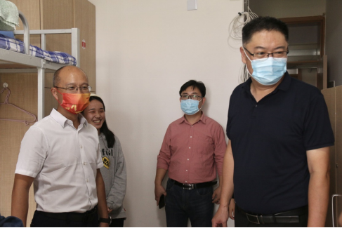 领导老师前往新生居住宿舍深入了解,并从入学近一个月以来的生活适应情况、学习情况、饮食习惯等方面与新生展开亲切交流。安全为首,领导老师特别强调宿舍安全与卫生问题,同时对空调、卫生间、床上用品的使用情况进行细致询问。
