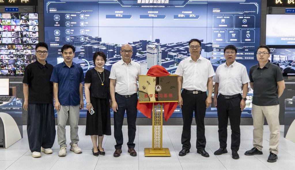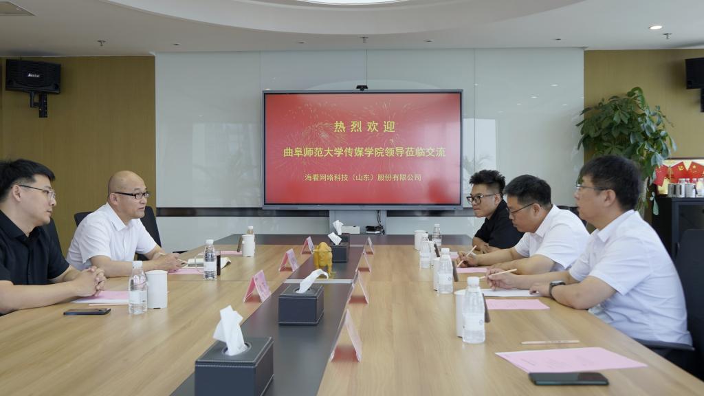 海看股份董事、总裁张晓刚、海看股份战略规划部总经理袁强、海看股份新媒体研究院公司总经理纪飞参与会谈。双方就学生就业分析、企业岗位需求、儒学传播与国际传播项目合作等方面进行深入交流并达成合作意向,共同致力于助推产学研协一体化发展,推动文旅产业、国际传播事业繁荣发展。会上,双方共同为教学实践基地揭牌。