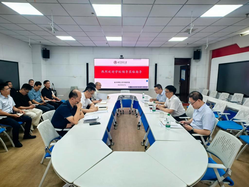院长王焕景和副院长赵可云就培养方案的修订、国家一流课程和专业的建设、教师教学比赛、学生竞赛活动获奖情况等方面的工作进行了汇报。胡凡刚围绕高质量教学成果的打造对学院下一步工作重点提出了建议和要求。