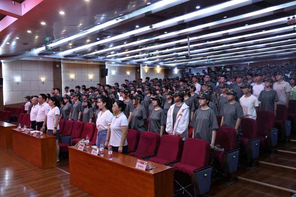 在雄壮的国歌声中,军训动员大会拉开帷幕。参训教官依次上台进行了简单的自我介绍,并对军训内容及要求进行了汇报,他们鼓励参训学生勇敢面对军训中的挑战和困难,以军人标准严格要求自己,团结协助、刻苦训练,圆满完成军训任务。