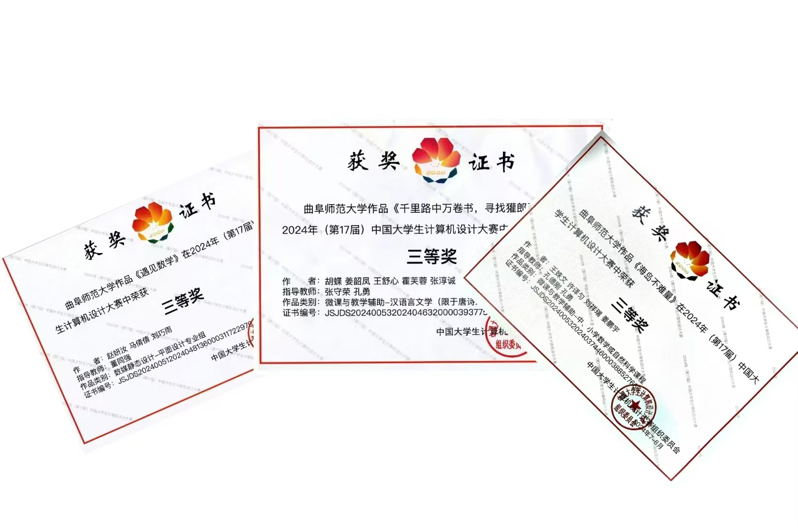 在第十七届中国大学生计算机设计大赛中,传媒学子荣获3项国家级奖项和41项省级奖项,参与人数和获奖数量较往年相比实现了突破。王姝文、许译瑞、刘祥瑞、姜鹏宇作品《海岛不难量》,赵妍汝、马倩倩、刘巧雨作品《遇见数字》和胡蝶、姜韶凤、霍芙蓉、王舒心及张淳诚制作的《千里路万卷书,寻找獾郎王安石——王安石经典词句赏析》均获得全国三等奖。
