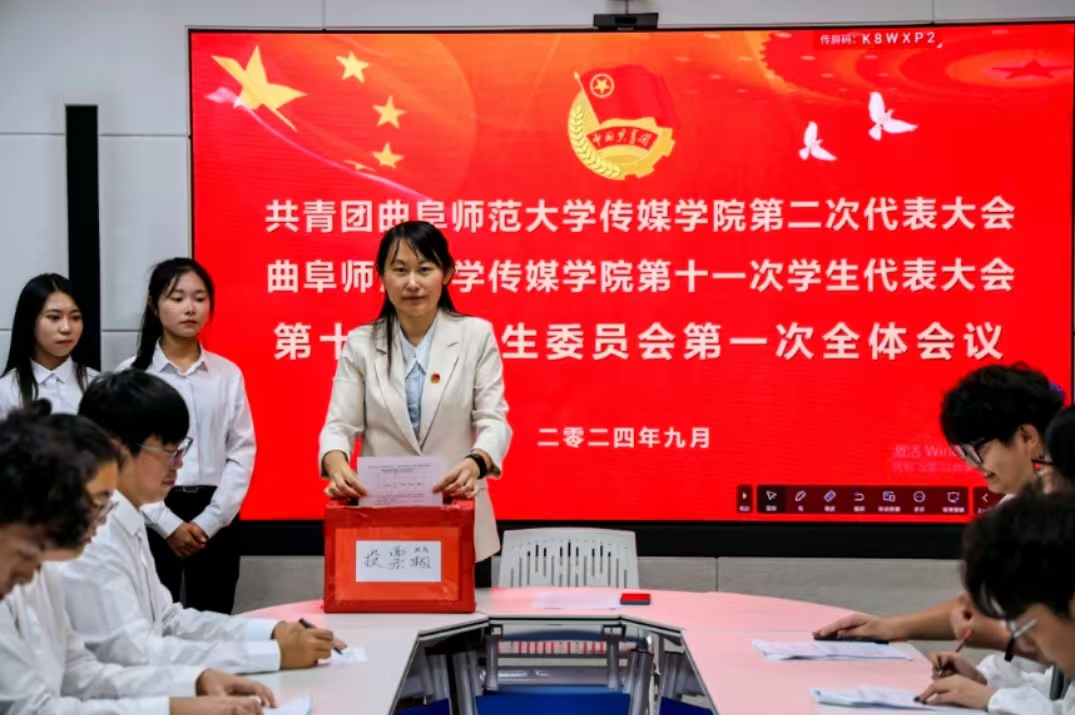 第十一届学生委员会第一次全体会议选举办法(草案),推荐了监票人,确定了计票人。参会成员选举了老虎机