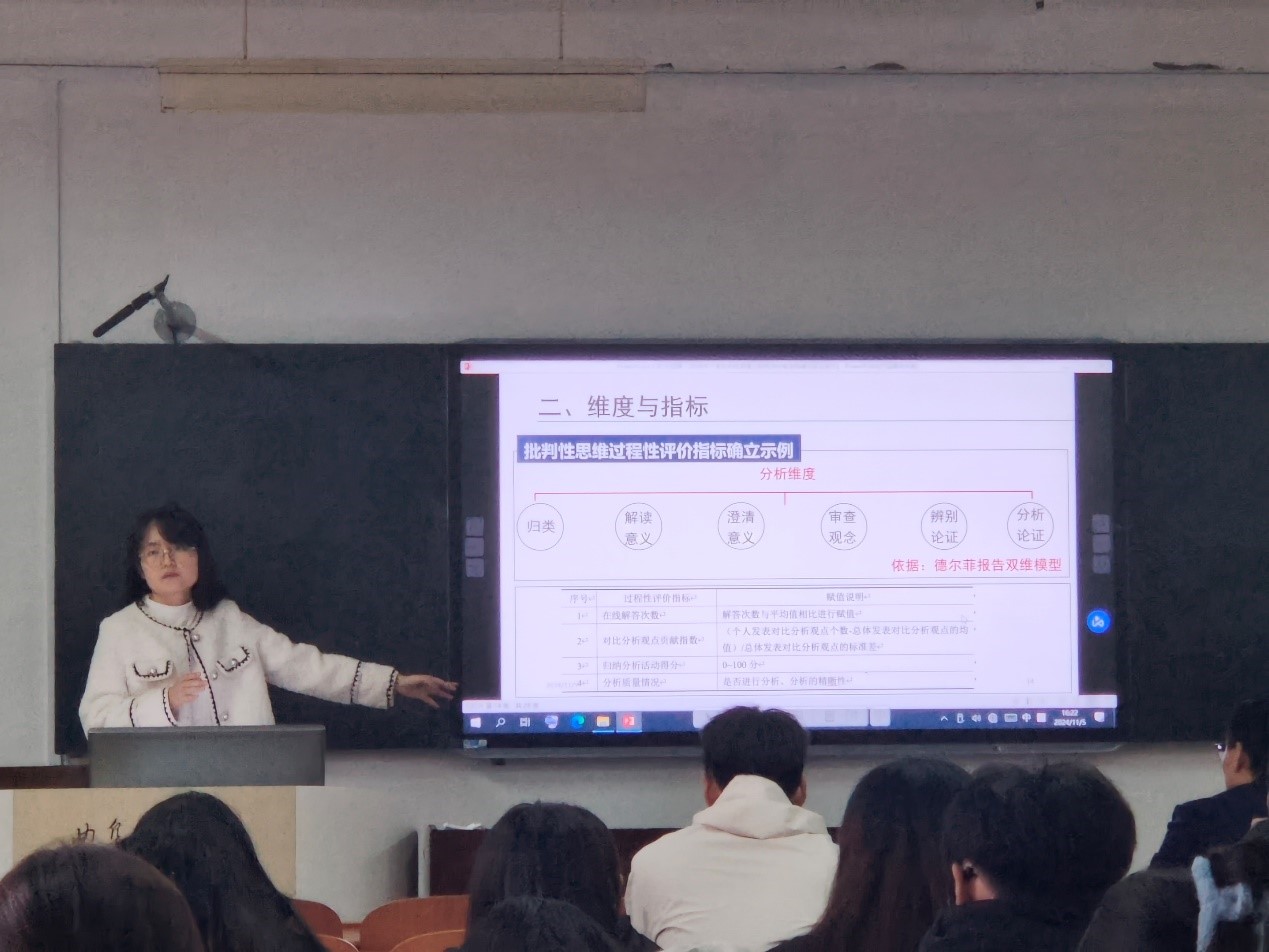 本次论坛围绕研究背景、维度与指标、应用案例、未来趋势四个方面展开,帮助学生深入了解批判性思维评价框架的构建与实证研究的基本框架和思路,为学生开展科学研究提供了有益建议与参考。黄雪娇以其博士论文《在线学习者批判性思维过程性评价框架构建与实际研究》为案例,基于对批判性思维评价方法的梳理,以德尔菲法和层次分析法为依托,向师生详细介绍了当前在线教育中批判性思维评价方法的发展现状与不足。她还结合《现代教育技术》课程,深入浅出地展示了如何运用新构建的评价框架进行实证研究,鼓励学生将书本知识运用到科学研究和生活中去,学以致用,用知识发现问题、认识问题、解决问题。