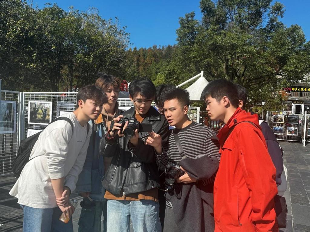师生一行先后到达黟县宏村、卢村、屏山、赛金花以及塔川森林公园等地,深入领略了徽州地区的传统风格建筑和古村落的历史遗迹。在老师的指导下,学生们以敏锐的镜头感和细致的观察力,用光影捕捉景色的古老与宁静,用画笔展现出传统文化的深厚底蕴,在实践中感受徽州魅力,也在交流碰撞中拓宽艺术想象。