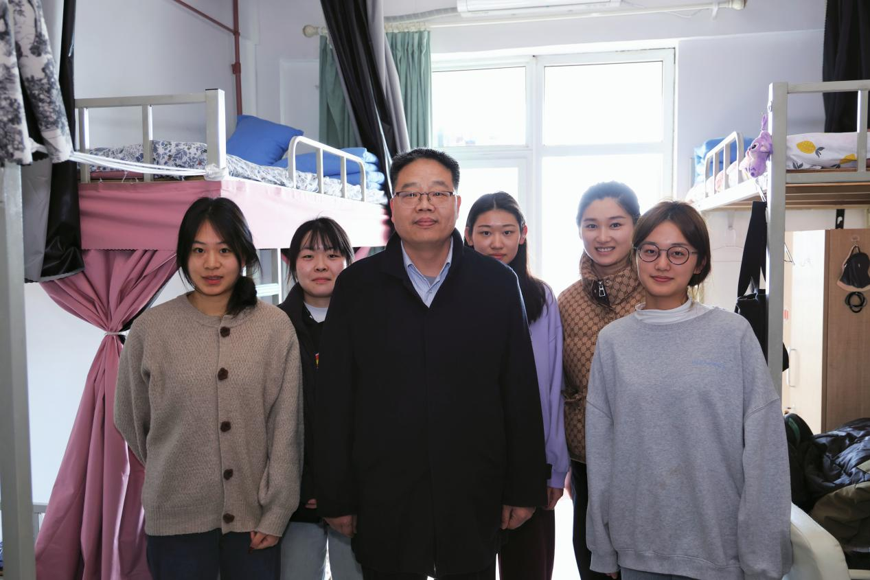 党委书记田维柱、院长王焕景、党委副书记田荣林在各年级辅导员的陪同下深入东升园、文泽园宿舍园区进行走访和慰问。