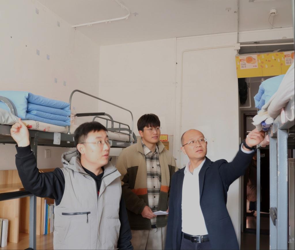走访中,学院领导老师对宿舍卫生进行了全面检查,认真排查了宿舍安全隐患,提醒学生们重点注意用电安全,共同营造和谐温馨的宿舍环境。随后,学院领导与学生们进行了亲切交流,就假期生活、返校情况以及新学期的学习计划进行了仔细询问,重点关注了学生的身心状态和学业状况,鼓励学生们迅速调整生活作息和学习状态,制定明确目标,合理规划时间,在学习和实践中长才干、增本领。针对毕业生宿舍,学院领导耐心询问了毕业生的考研、就业情况,并提出相应的 建议和指导,鼓励学生增强信心,明悉升学和就业目标,充分做好考研复试和求职择业的各项准备。
