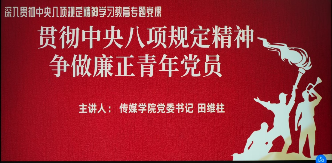 本次会议以“贯彻中央八项规定精神,争做廉正青年党员”为主题,通过政策解读与典型案例剖析相结合的方式,以“小切口”阐释“大道理”。田维柱在报告中指出,青年党员要系好"第一粒扣子",严守中央八项规定精神,在日常学习工作中坚决抵制"小恩小惠",筑牢"不贪不腐"的思想防线;要正确处理"守规矩"与"敢担当"的辩证关系,既要保持清正廉洁的政治本色,也要发扬敢为人先的进取精神。针对学生干部群体,他要求学生干部立足岗位履职尽责,以务实作风服务师生。