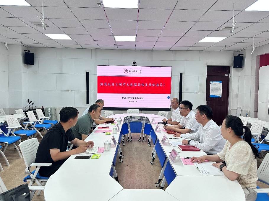 共同探讨合作路径。王焕景围绕大数据、教育人工智能等专业,向大数据局一行详细介绍了学院的学科布局,展现了学院的学科优势与人才培养特色,为后续合作提供了清晰的蓝图。双方一致认为,未来应拓展合作维度,为学生打造优质的学习实践平台,助力人才精准对接行业需求。同时,大数据局的资源也将为学院发展提供有力支持,从而开启校地协同育人、共促发展的新篇章。