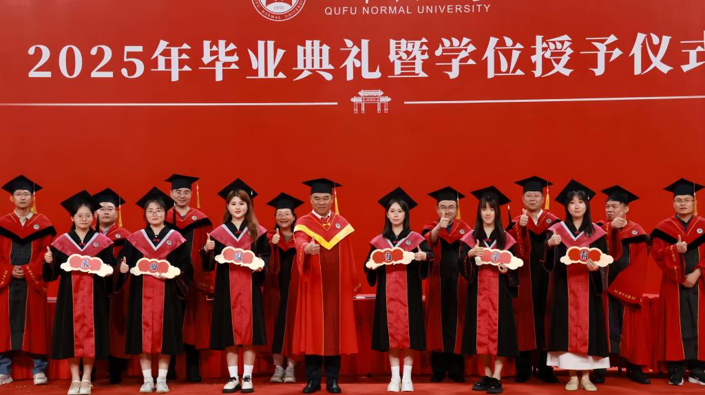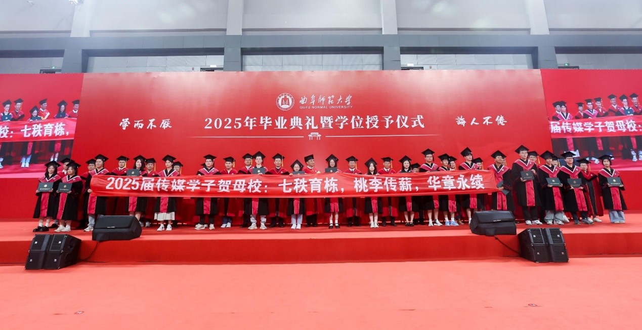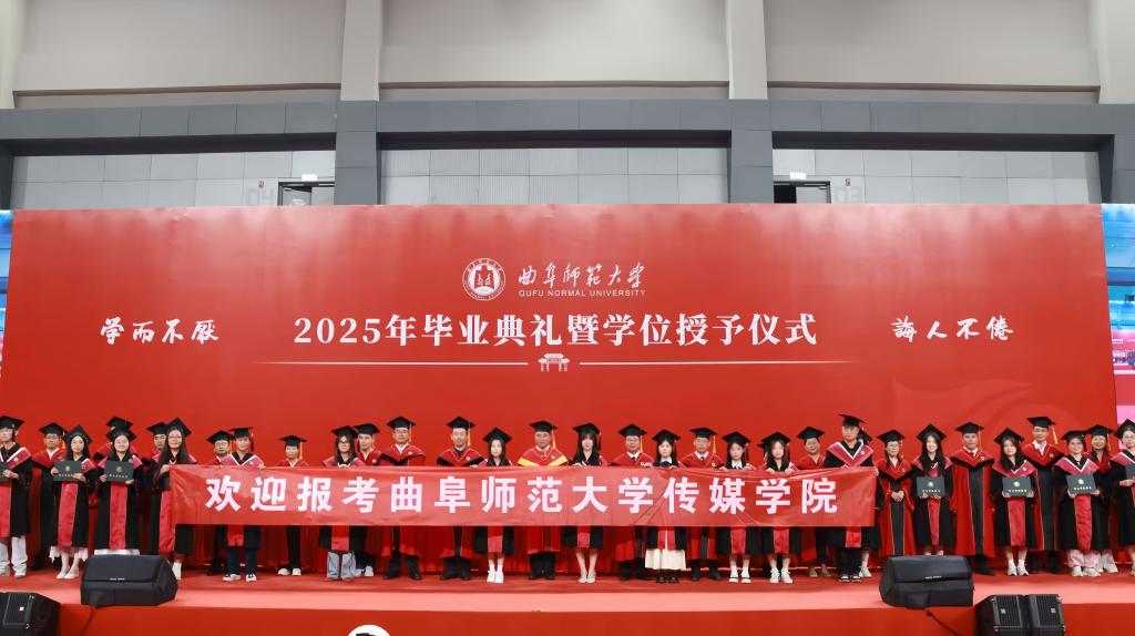 2025届毕业典礼在曲阜校区西区体育馆和日照校区香河体育公园体育馆同步举行。典礼现场庄重而热烈,传媒学子以独特的方式展现了学院风采,为大学生活画上了圆满的句号。