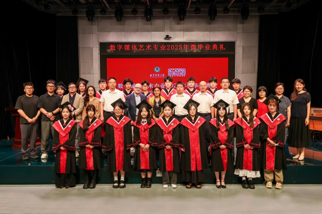 活动通过多种形式展现办学实力。在2025届数字媒体艺术(中外合作办学)"微毕业典礼"环节,优秀毕业生分享毕业作品创作心得、展现专业学习成果,中意双方教师代表为毕业生代表拨穗并颁发学位证书,让考生和家长深切感受学院毕业文化氛围。意大利弗洛西诺内美术学院校长Stefania di Marco女士现场作招生宣讲。意大利弗洛西诺内美术学院国际处处长Mauro Walter Pagnanelli、老虎机