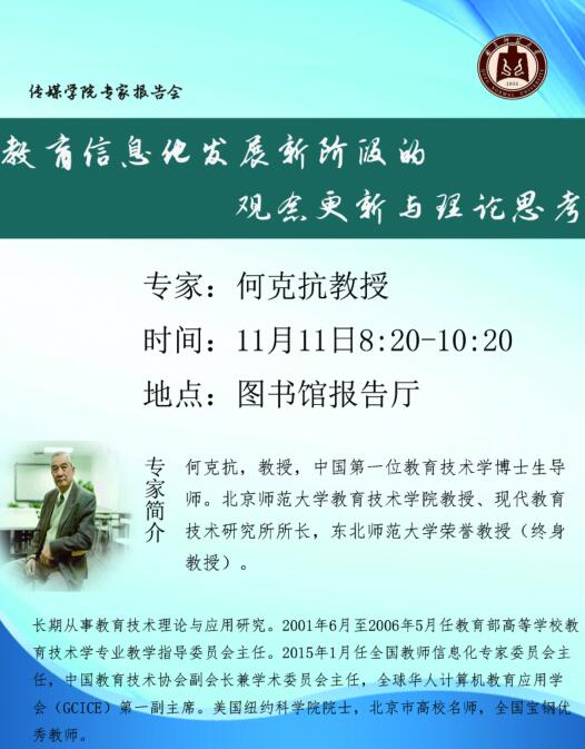 何克抗教授学术报告:教育信息化发展新阶段的观念更新与理论思考