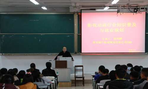 于A105举办了“影视动画行业知识普及与就业规划”报告会。青岛蜗牛影视策划有限公司CEO崔明鹏、蜗牛影视策划有限公司市场部经理崔业涛、老虎机