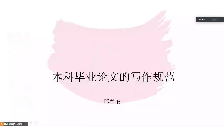 “毕业论文的写作是对毕业生基本理论和基本技能掌握程度的一次总测试”,邱春艳老师强调了毕业论文写作规范的重要性,尤其说明了毕业论文写作格式的最新要求。随后,围绕毕业论文封面撰写格式、目录格式、中英文使用、专业词语使用等方面,邱春艳老师进行了全面解读,并结合实际案例辅助说明,加强与会人员对于论文写作规范的理解。会议最后,邱春艳老师针对同学们提出的问题进行了耐心和细致的解答。