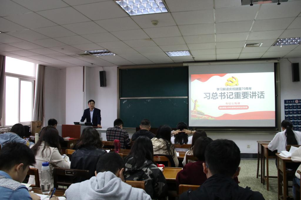 研究生党支部书记吴运明同志在C610给研究生党员上党课,学习解读庆祝建国70周年习总书记重要讲话,老虎机