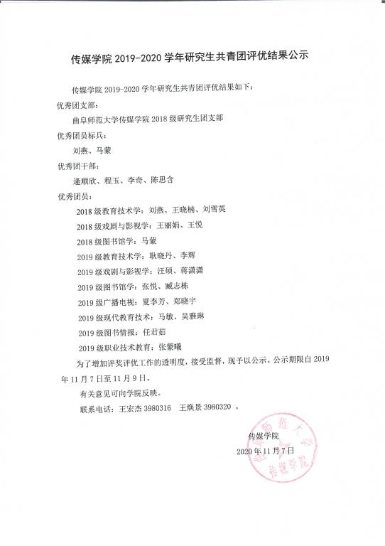 【来源:老虎机 2019-2020学年研究生共青团评优结果公示 | 发布日期:2020-11-07 】